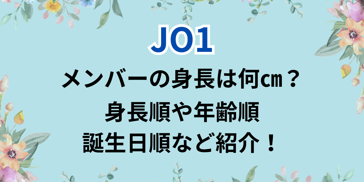 この記事では、JO1のメンバーの身長は何㎝かや、身長順・デビュー当時から身長が伸びたメンバーはいるか・年齢順・誕生日順など紹介します。