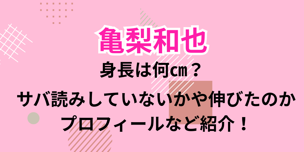 この記事では、亀梨和也の身長は何㎝かや身長サバ読みしていないか共演者と比較・身長伸びたのかやプロフィールなど紹介します。