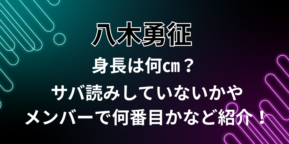 この記事では、八木勇征さんは身長何㎝なのかやサバ読みしていないかFANTASTICSメンバーなどと比較・プロフィールなど紹介します。